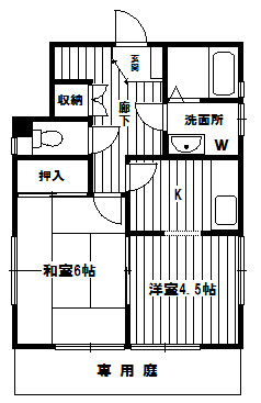 間取り 2K 間取り詳細 K3帖 / 和室6帖 / 洋室4.5帖 専有面積 37㎡